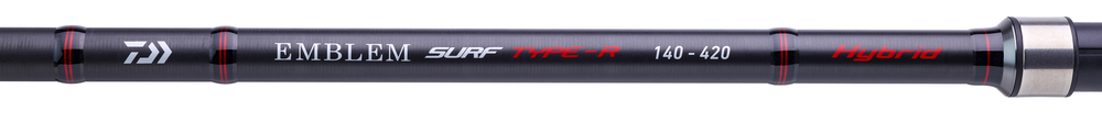 Les Emblem Surf Type R proposent un blank très fin aux éléments égaux et dont le poids réduit va permettre aux pêcheurs en surfcasting de prendre un plaisir maximal en pêche. Les modèles dotés d'un scion plein dit "hybride" sont équipés d'un enroulement de bande réfléchissante sur une base de peinture phosphorescente afin de faciliter la visibilité lors des pêches nocturnes. Il est également important de noter que ces fameux scions hybrides sont équipés d'un anneau simple patte sur son extrémité afin d'augmenter la réponse du scion sur les petites tirées de poissons méfiants et d'avoir une action très marquée lors de la mise en place de la canne sur sa pique.