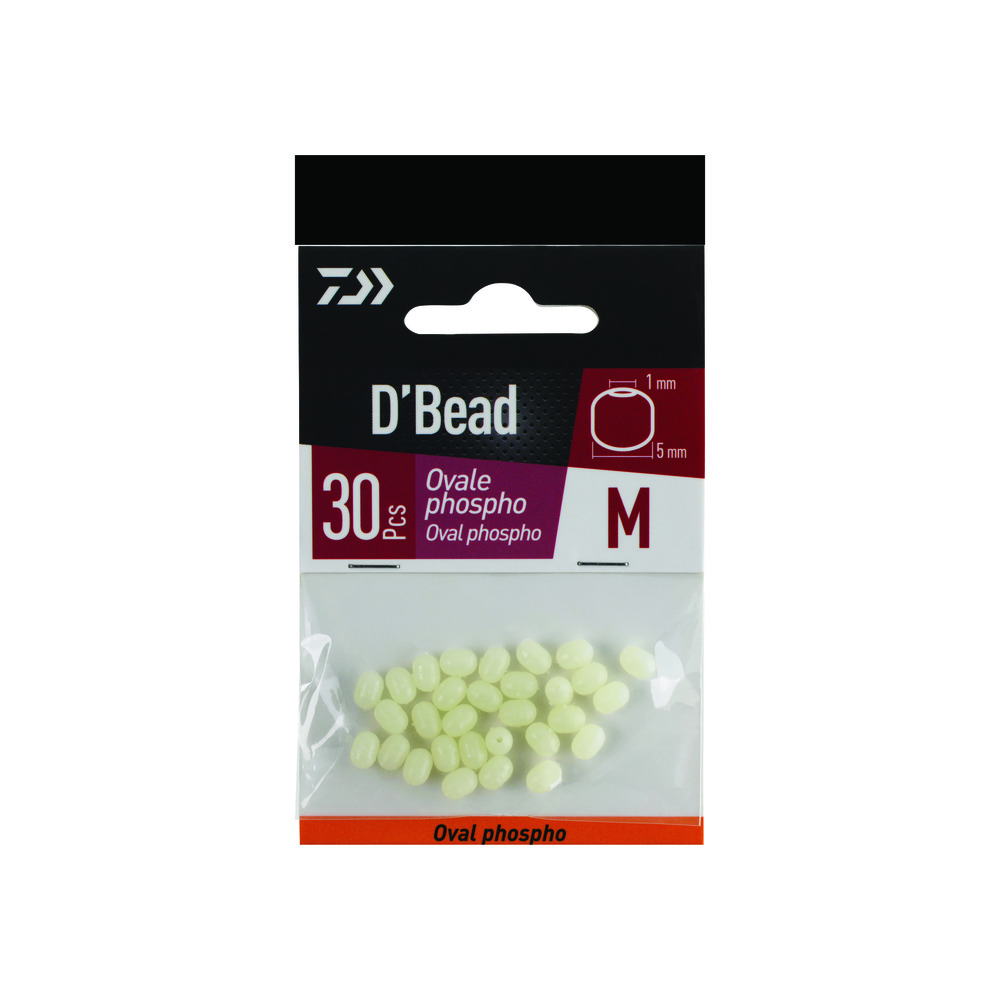 Les perles ovales phosphorescentes sont certainement les plus utilisées en surfcasting. Le coloris phospho est une source de lumière capable de booster la bioluminescence de certains appâts tels que les arénicoles ou encore les blancs de céphalopodes. Disponibles en trois tailles, les modèles L sont très utilisés sur la face Atlantique et les tailles intermédiaires correspondent plutôt aux pêches fines typiques de la mer Méditerranée.