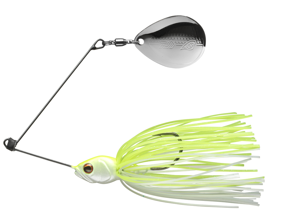 L'armature en titane permet d'assurer une parfaite rotation de la palette ronde (colorado) et une excellente réactivité du leurre à la moindre traction. Hameçon de taille 2/0 (traitement de surface SaqSas) permettant de monter des "trailers" jusqu'à 3 pouces (7,5 cm).
